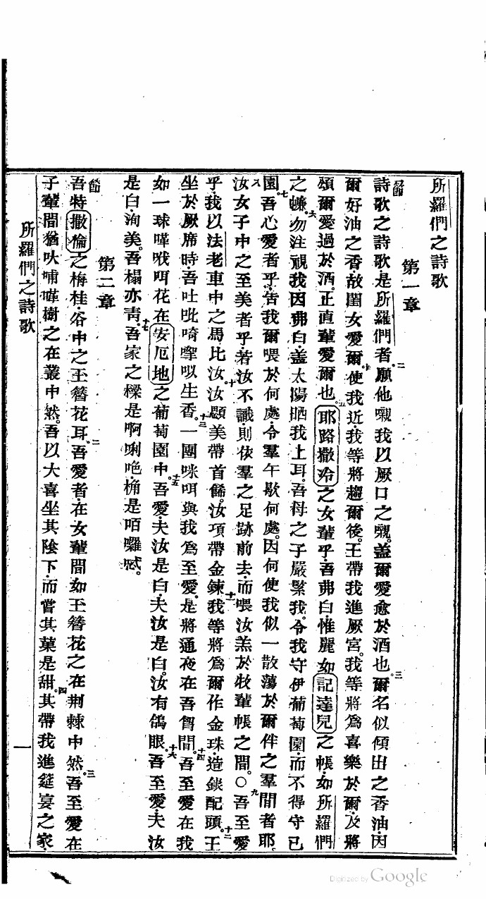 1822年新舊約全書 雅歌 1 章 1 節到 2 章 4 節