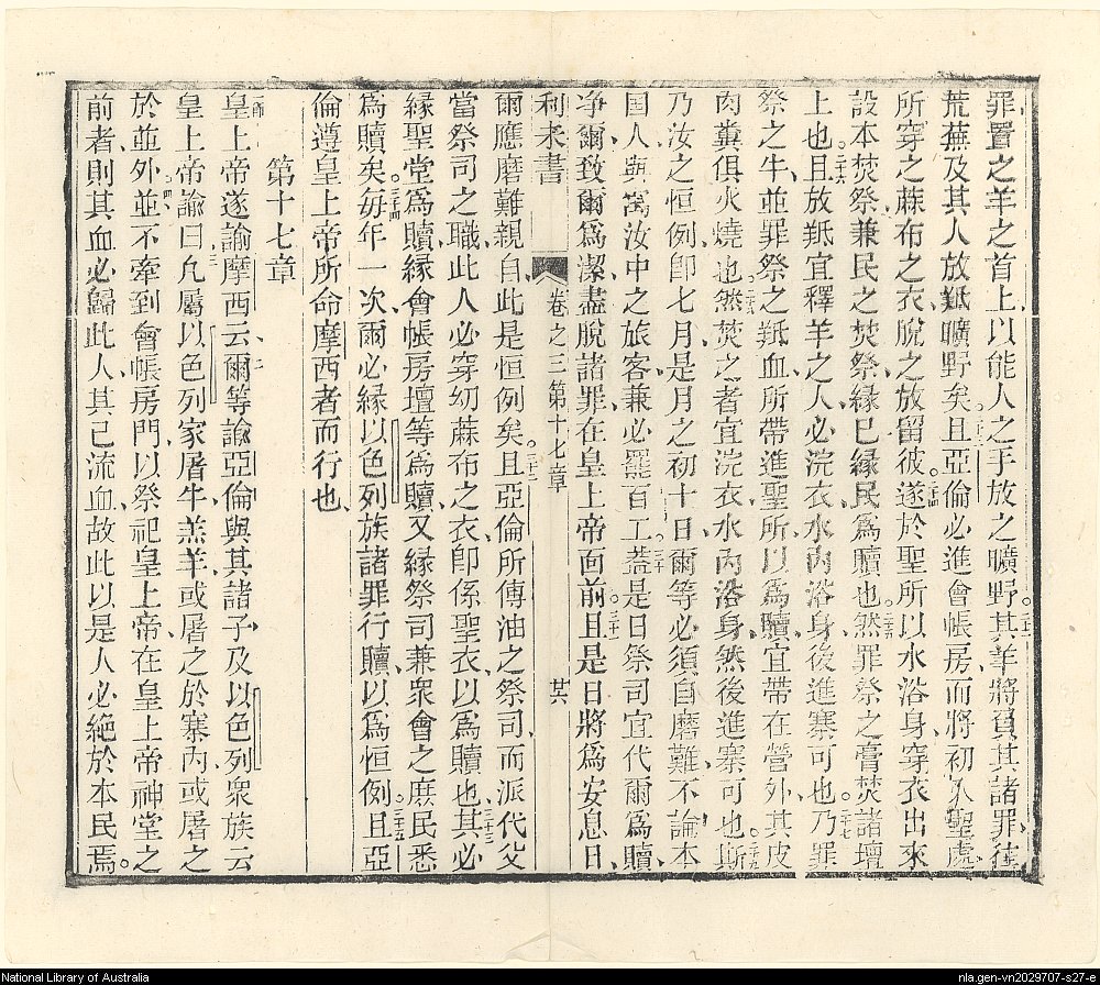 1853年舊遺詔聖書:利未記 利未記 16 章 22 節到 17 章 4 節