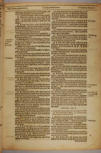 1613年The Genealogies recorded in the sacred scriptures 出埃及記 28 章 13 節到 29 章 4 節