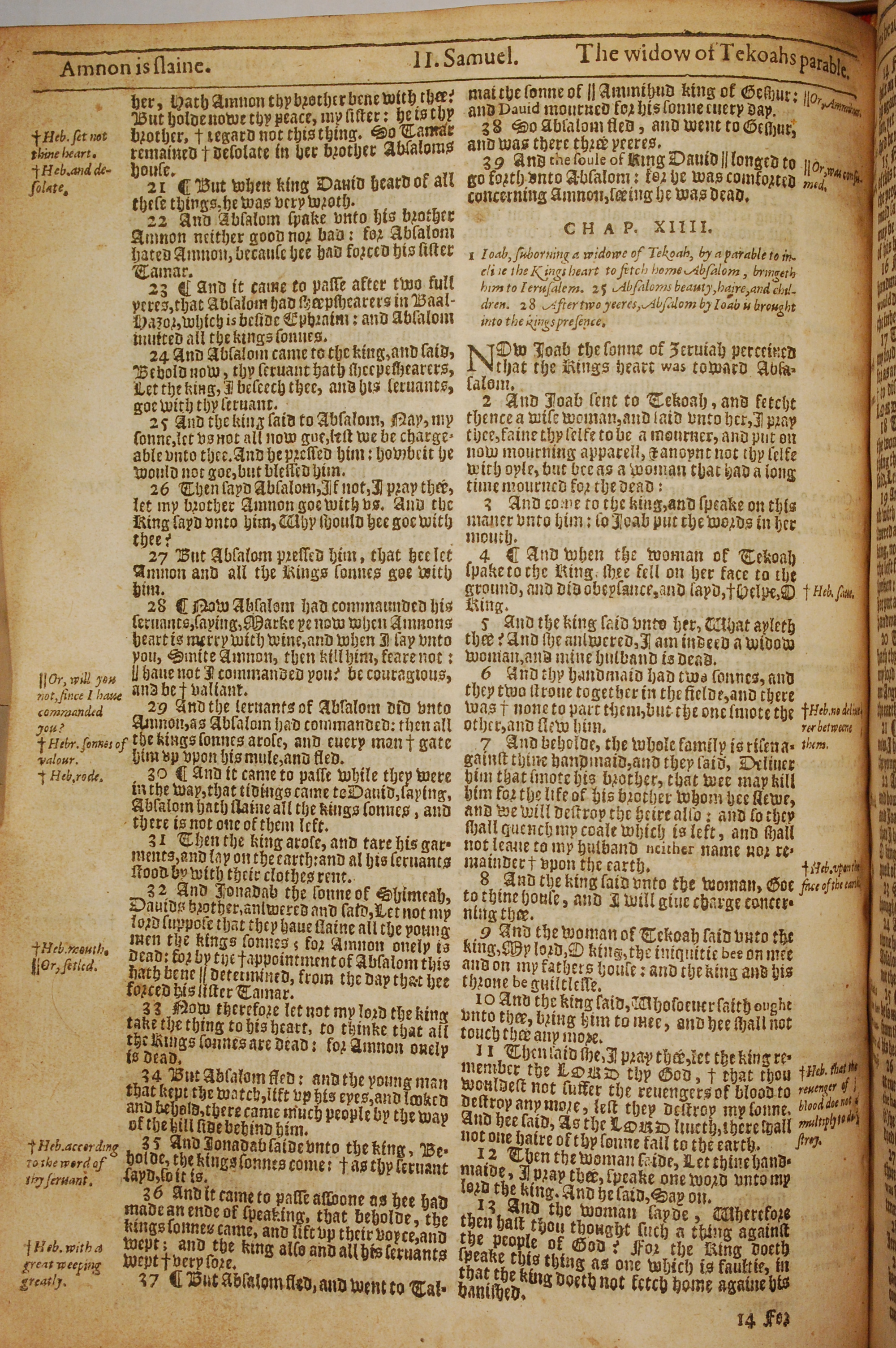 1613年The Genealogies recorded in the sacred scriptures 撒母耳記下 13 章 21 節到 14 章 13 節