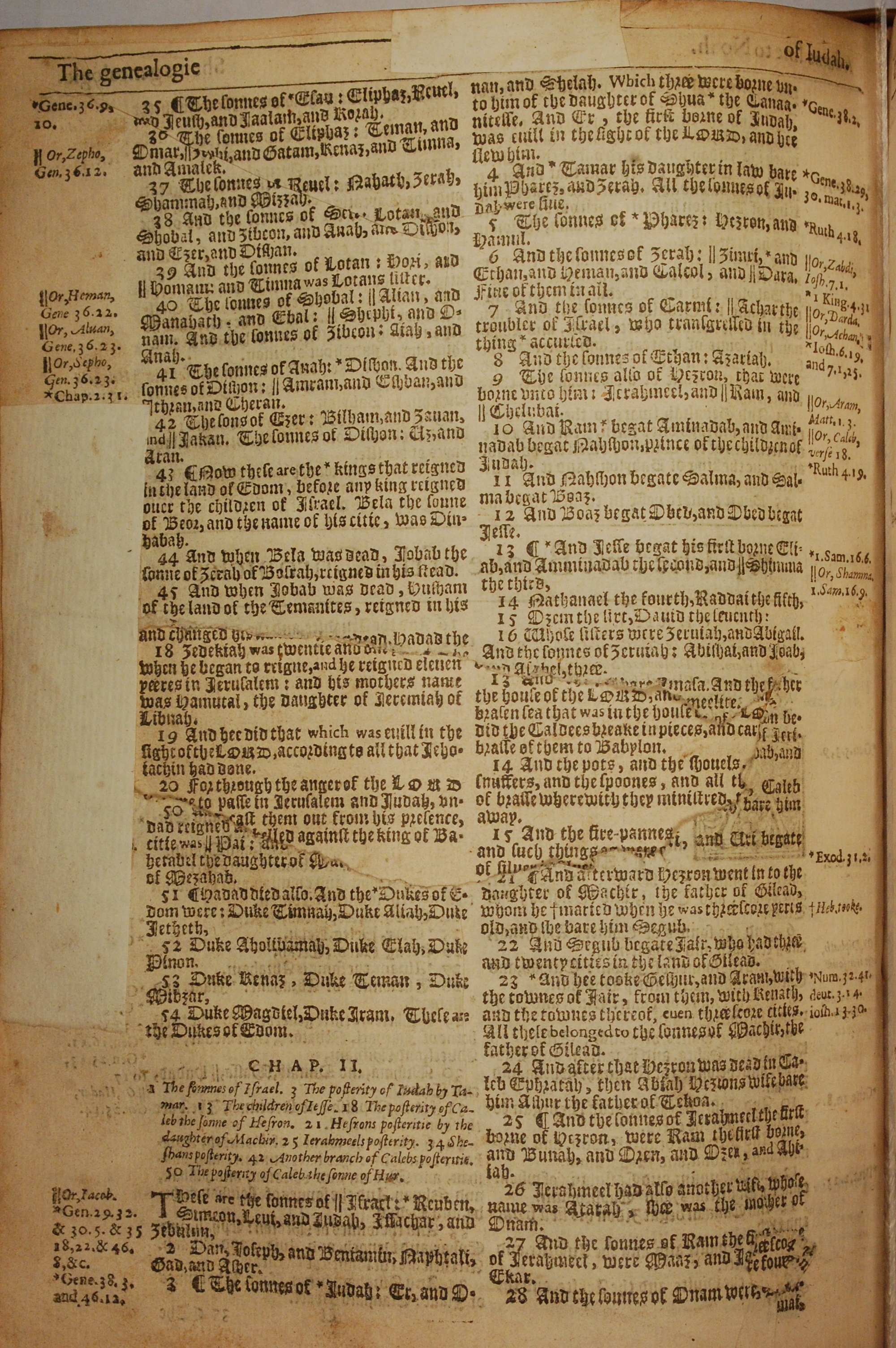 1613年The Genealogies recorded in the sacred scriptures 歷代志上 1 章 35 節到 2 章 28 節