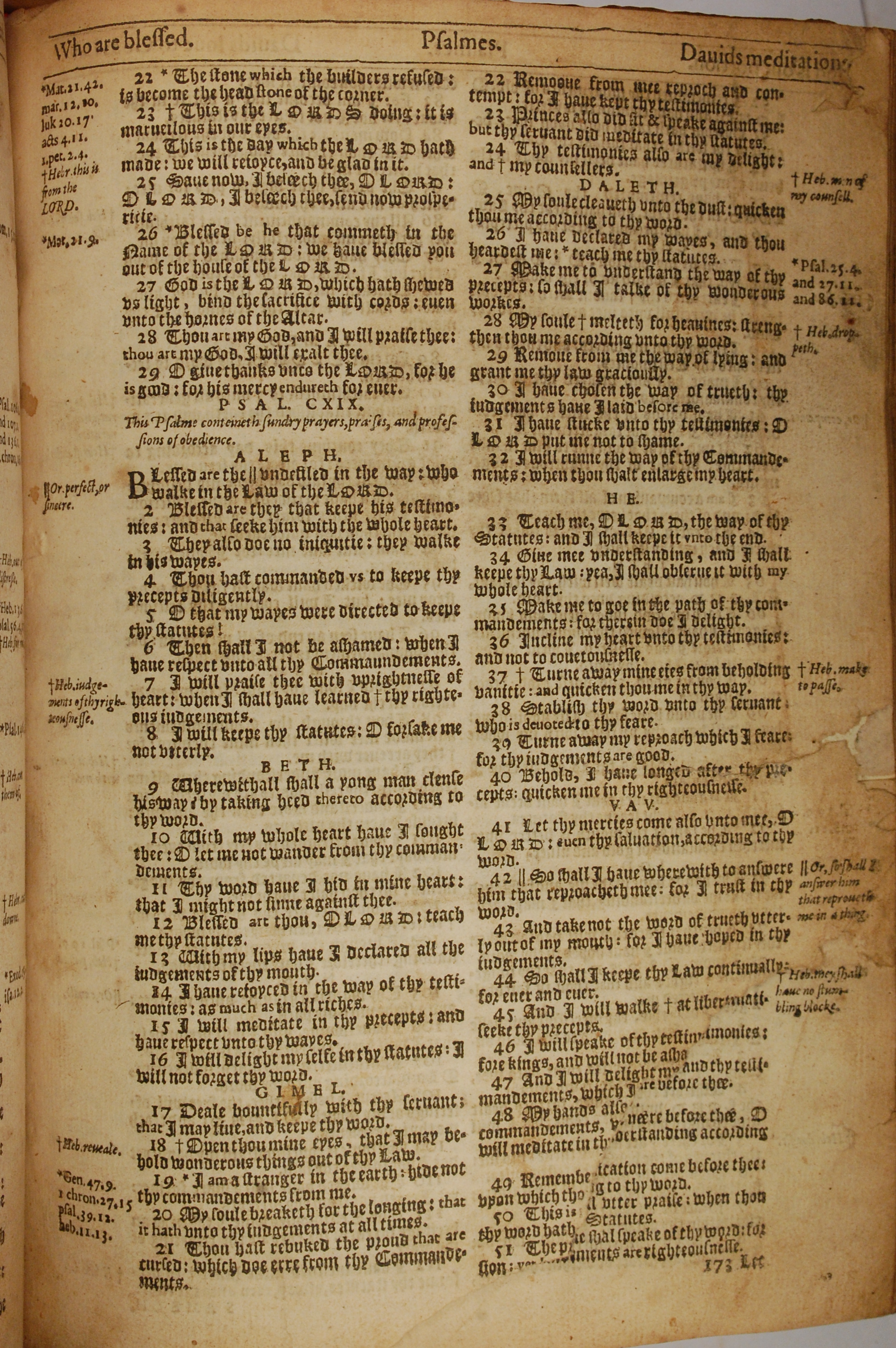 1613年The Genealogies recorded in the sacred scriptures 詩篇 118 章 22 節到 119 章 51 節