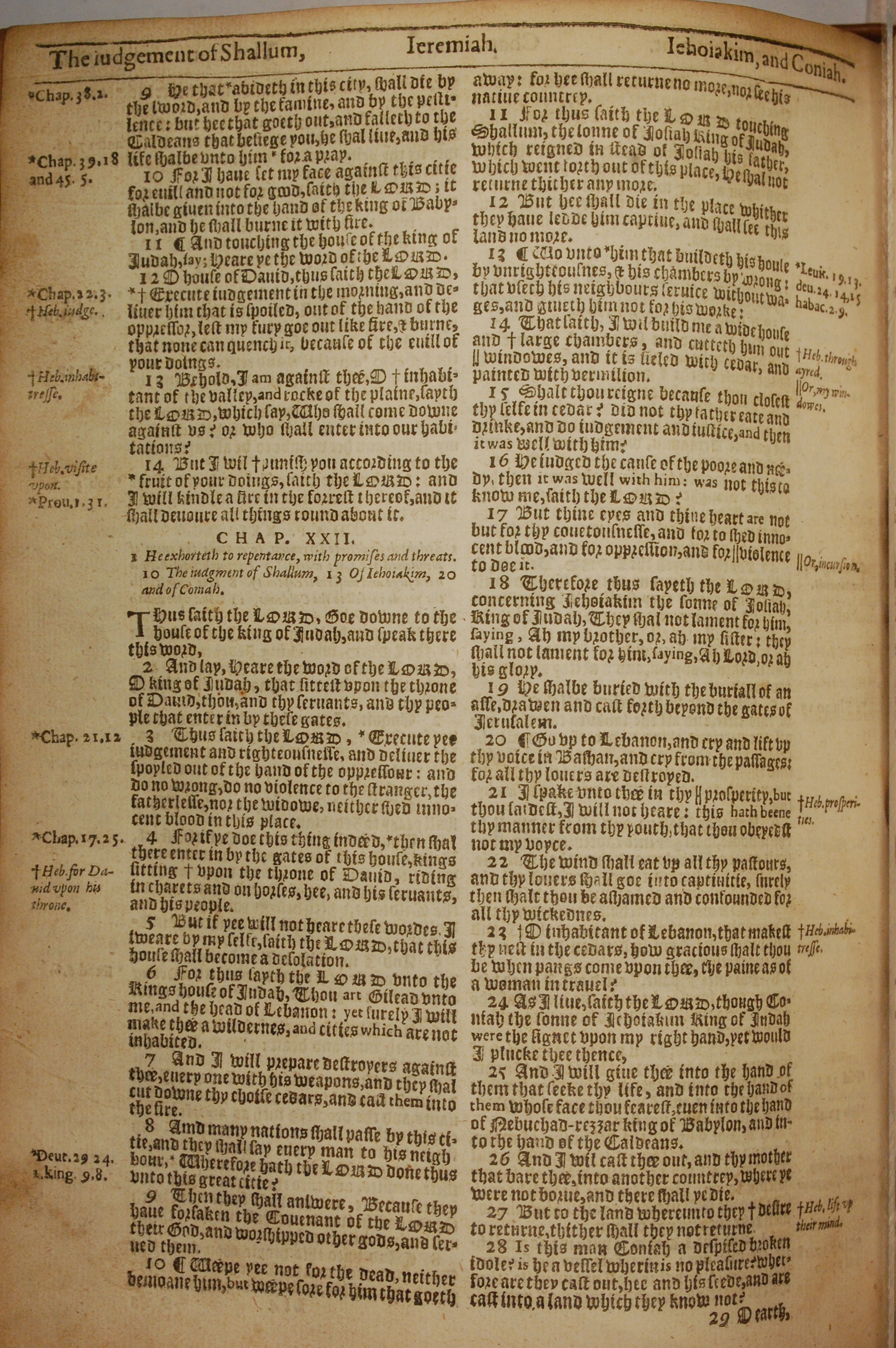 1613年The Genealogies recorded in the sacred scriptures 耶利米書 21 章 9 節到 22 章 28 節