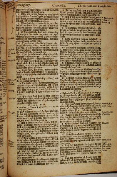 1613年The Genealogies recorded in the sacred scriptures 彌迦書 3 章 3 節到 5 章 7 節