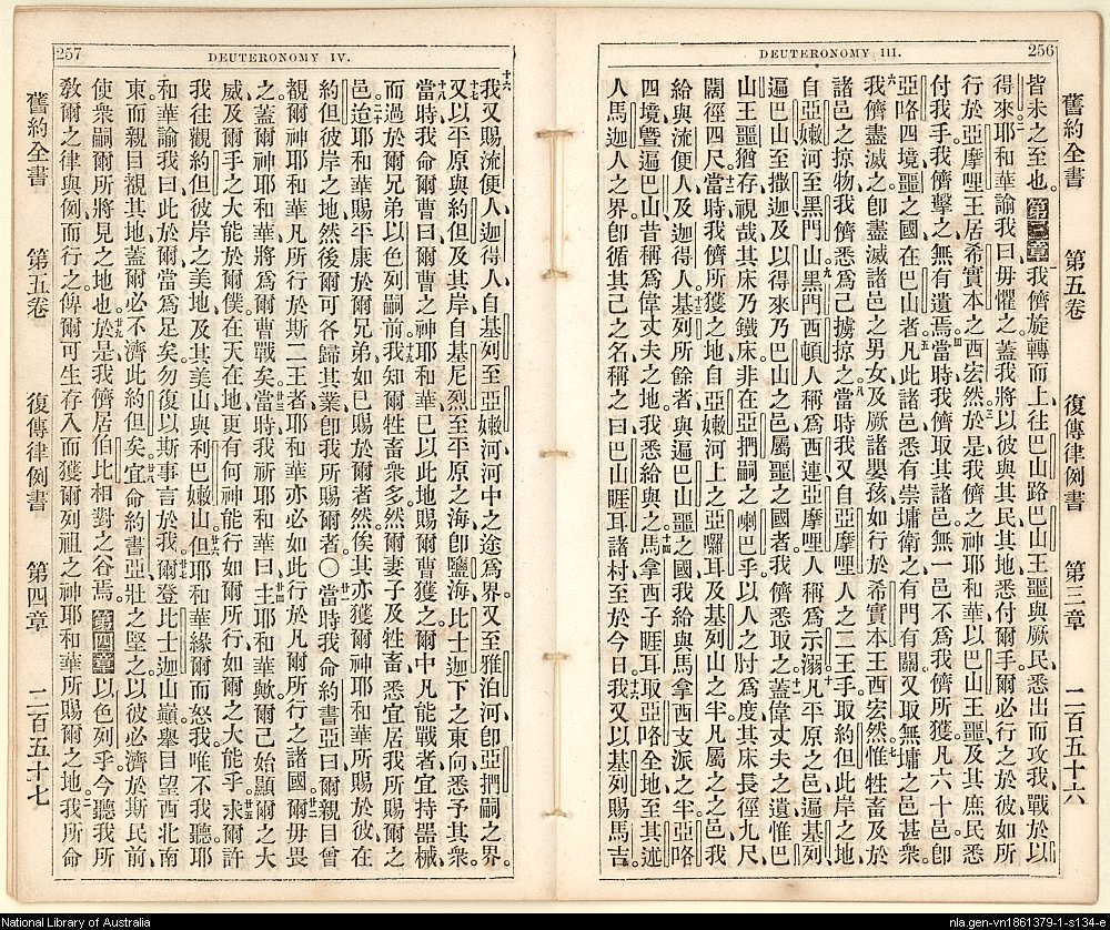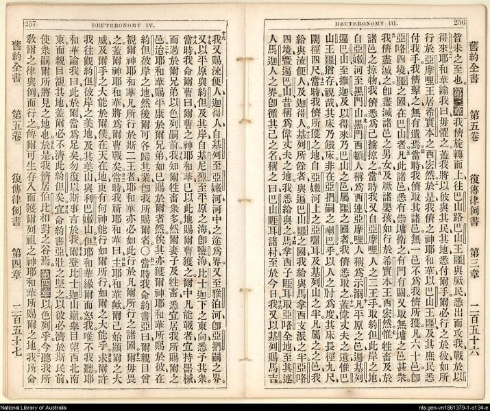 1865年舊約創世記至士師記 申命記 3 章 1 節到 4 章 2 節