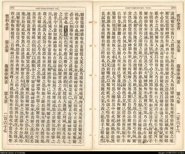 1865年舊約創世記至士師記 申命記 8 章 2 節到 9 章 10 節