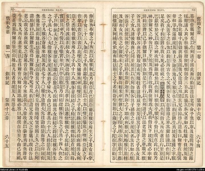 1865年舊約創世記至士師記 創世記 45 章 21 節到 46 章 34 節