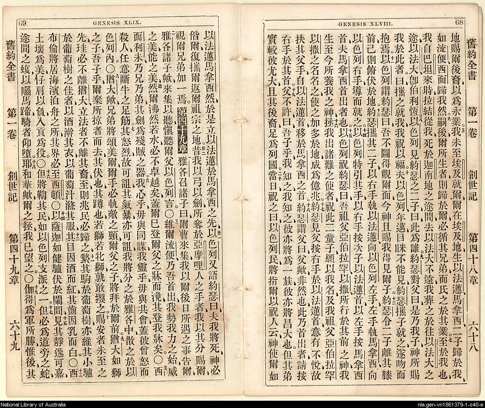 1865年舊約創世記至士師記 創世記 48 章 5 節到 49 章 19 節