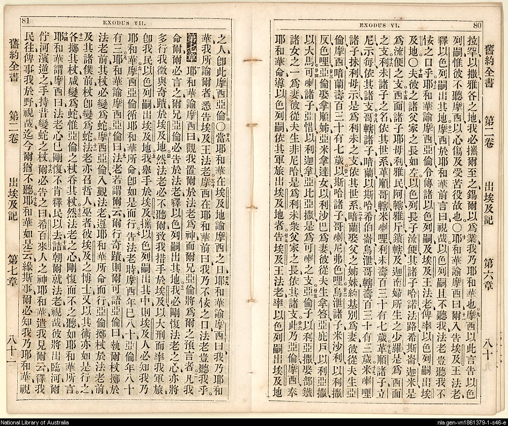 1865年舊約創世記至士師記 出埃及記 6 章 9 節到 7 章 17 節