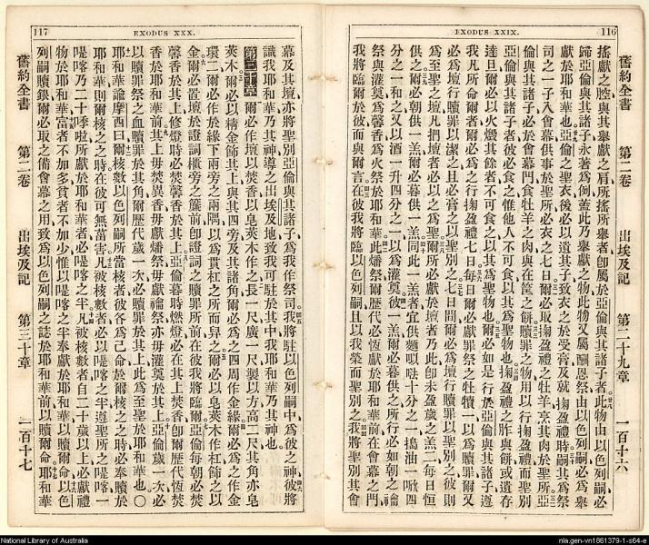 1865年舊約創世記至士師記 出埃及記 29 章 28 節到 30 章 17 節