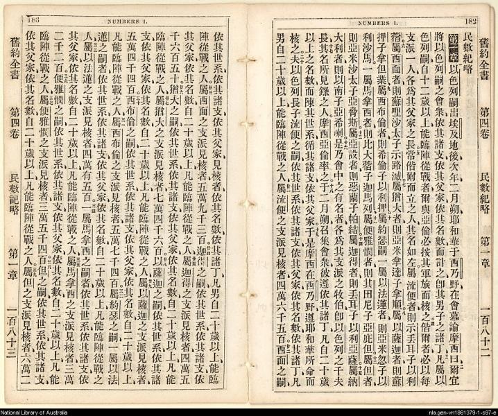 1865年舊約創世記至士師記 民數記 1 章 1 節到 1 章 39 節