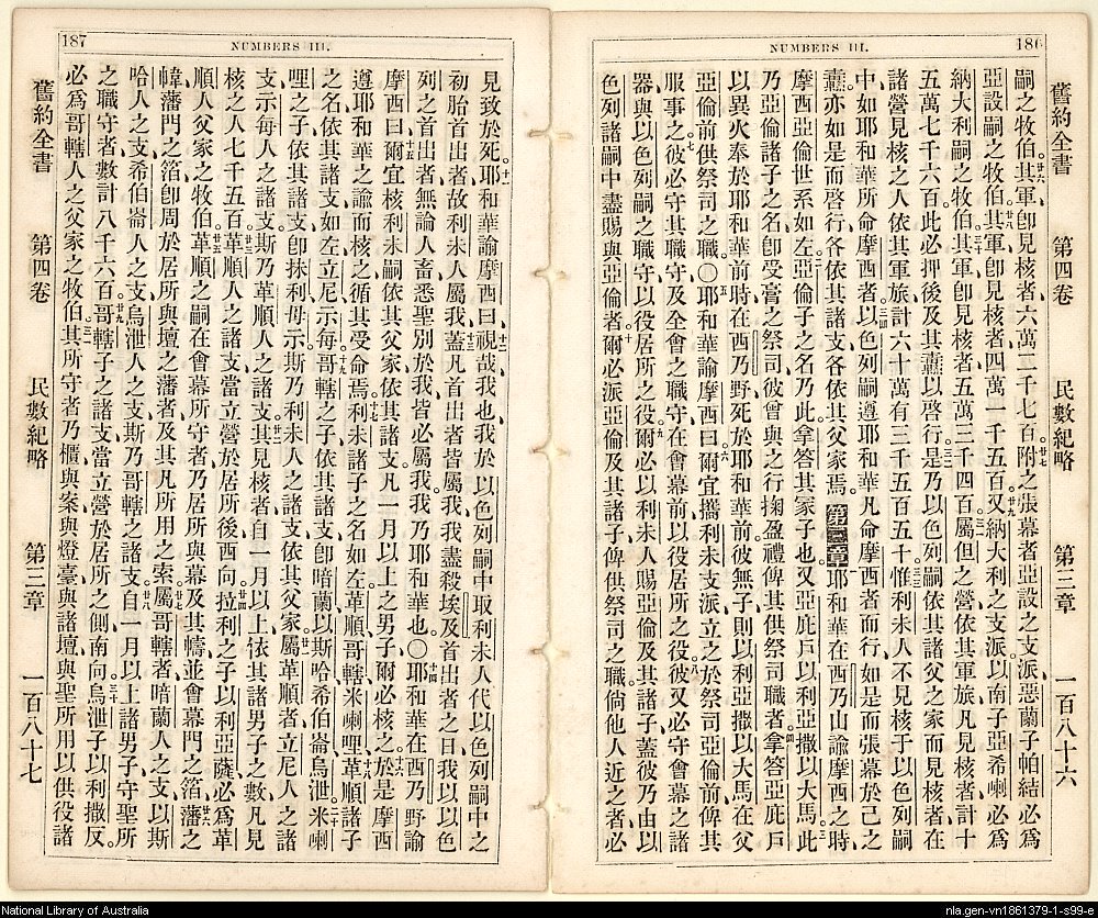 1865年舊約創世記至士師記 民數記 2 章 26 節到 3 章 31 節