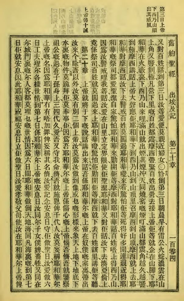 1923年新舊約全書 出埃及記 19 章 16 節到 20 章 12 節