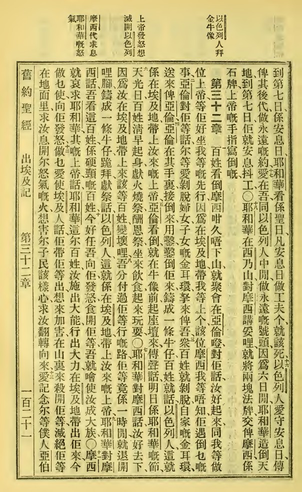 1923年新舊約全書 出埃及記 31 章 16 節到 32 章 13 節