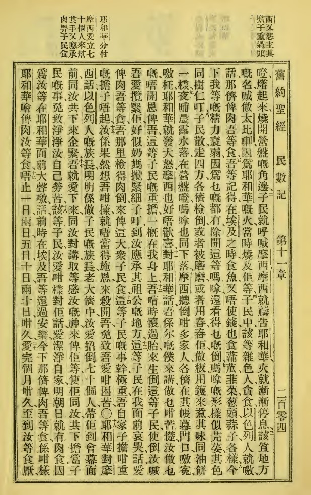 1923年新舊約全書 民數記 11 章 2 節到 11 章 20 節