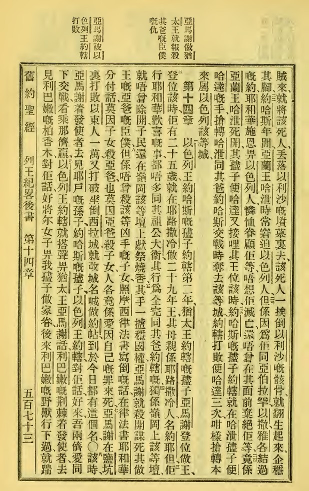 1923年新舊約全書 列王紀下 13 章 22 節到 14 章 9 節