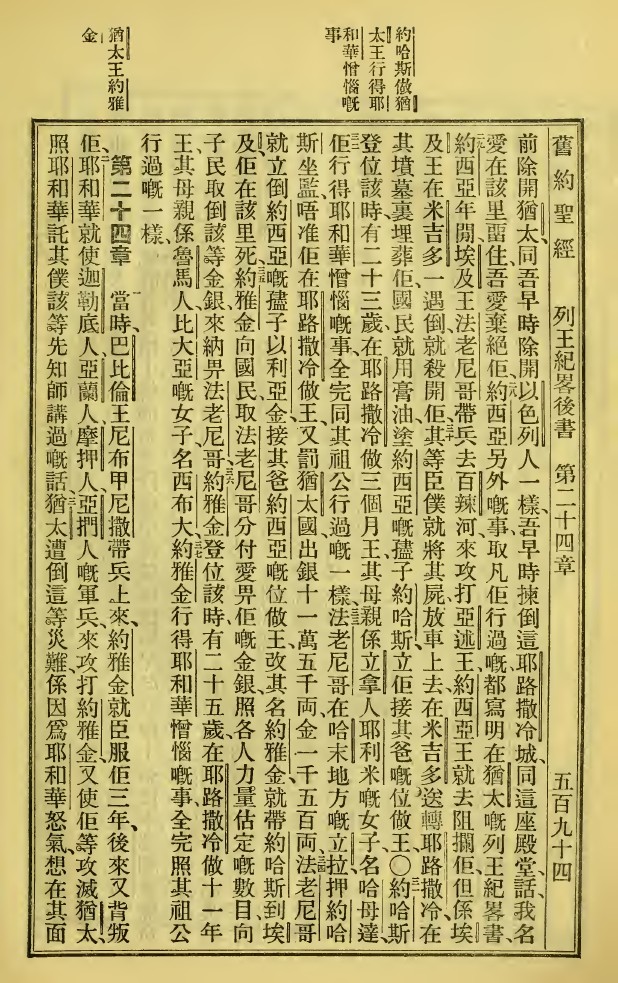 1923年新舊約全書 列王紀下 23 章 28 節到 24 章 3 節
