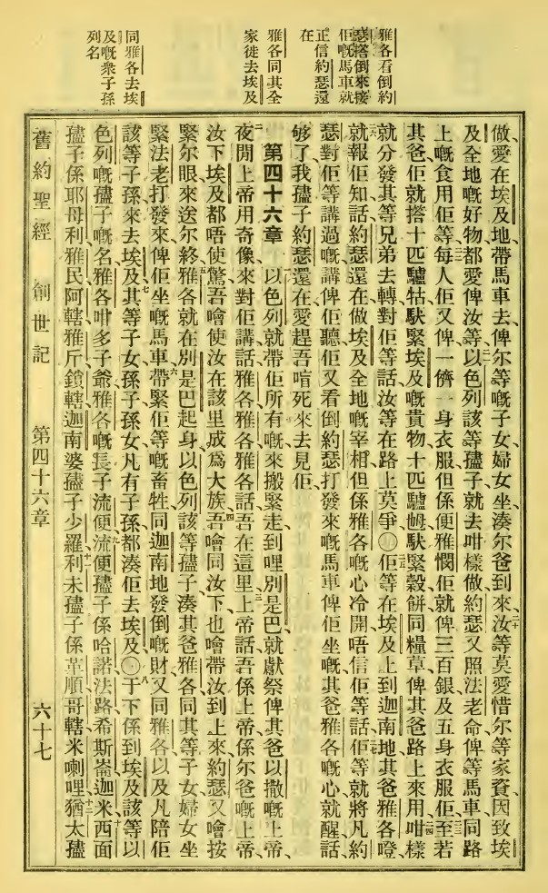 1923年新舊約全書 創世記 46 章 20 節到 46 章 12 節