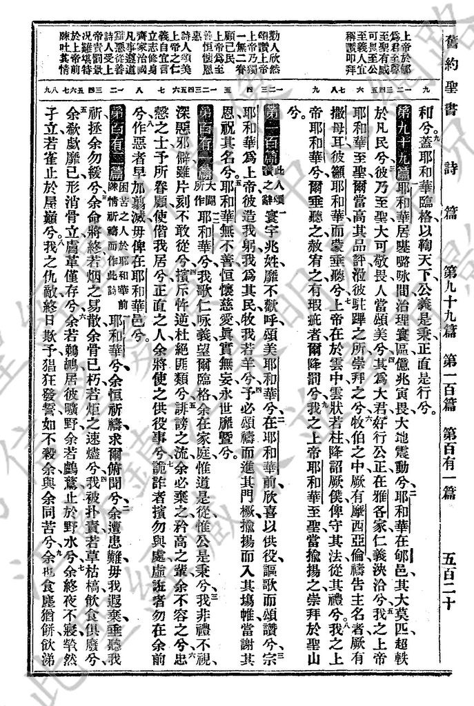 1927年新舊約全書(委辦譯本) 詩篇 98 章 9 節到 102 章 9 節