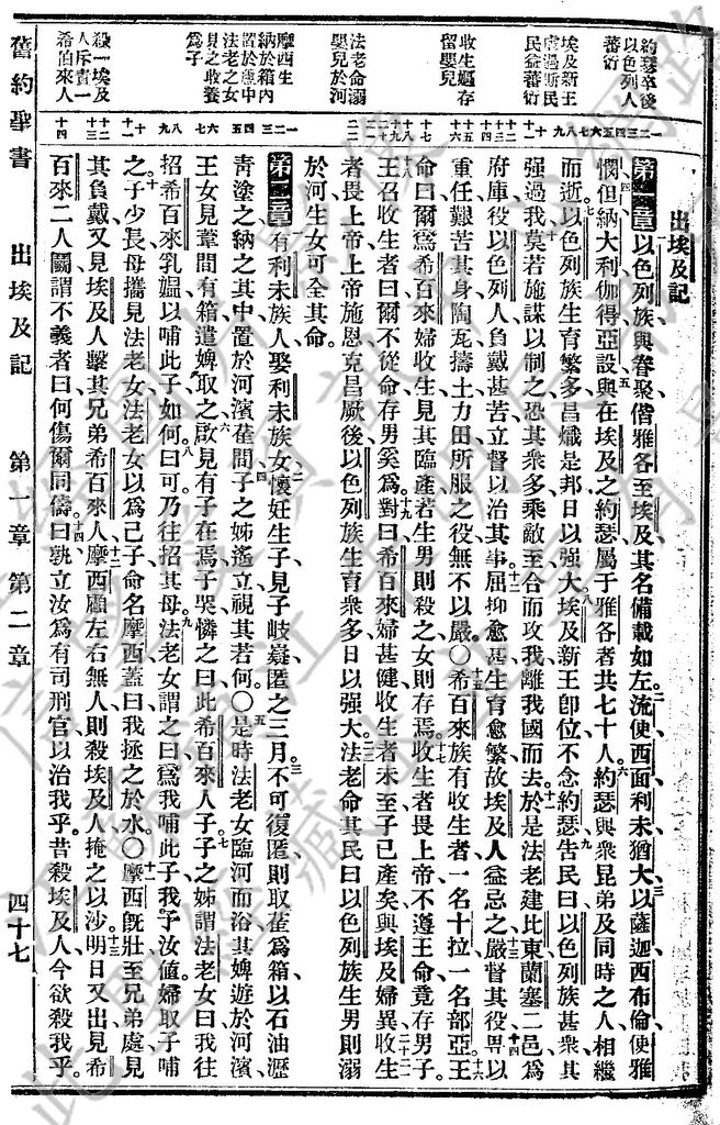 1927年新舊約全書(委辦譯本) 出埃及記 1 章 1 節到 2 章 14 節
