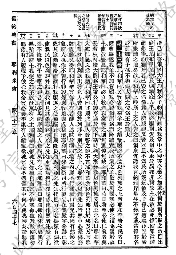 1927年新舊約全書(委辦譯本) 耶利米書 22 章 25 節到 23 章 18 節