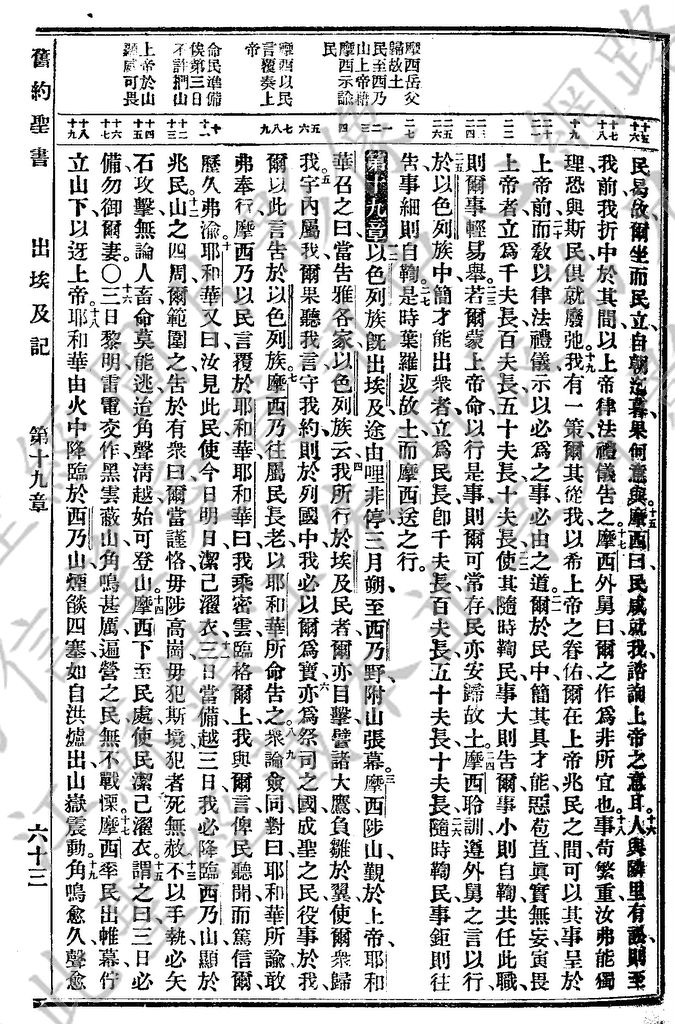 1927年新舊約全書(委辦譯本) 出埃及記 18 章 15 節到 19 章 19 節