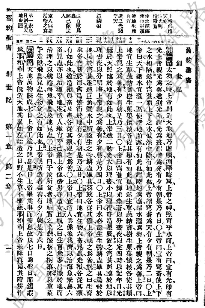 1927年新舊約全書(委辦譯本) 創世記 1 章 1 節到 2 章 5 節