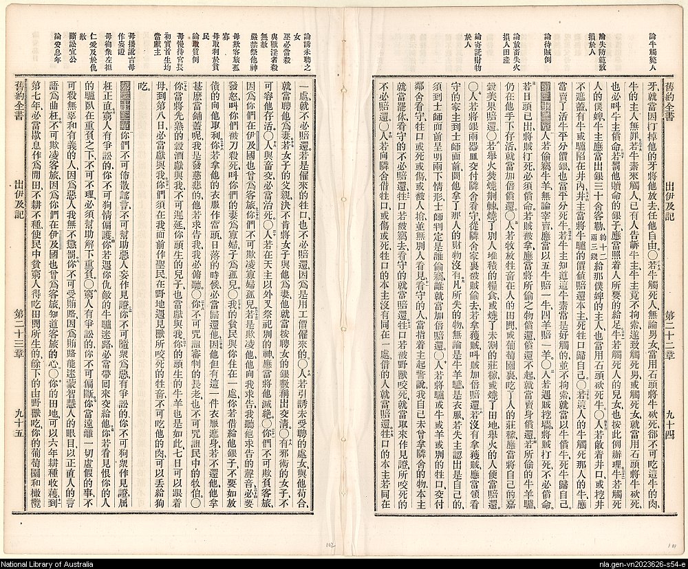 1874年舊約全書 出埃及記 21 章 28 節到 23 章 11 節