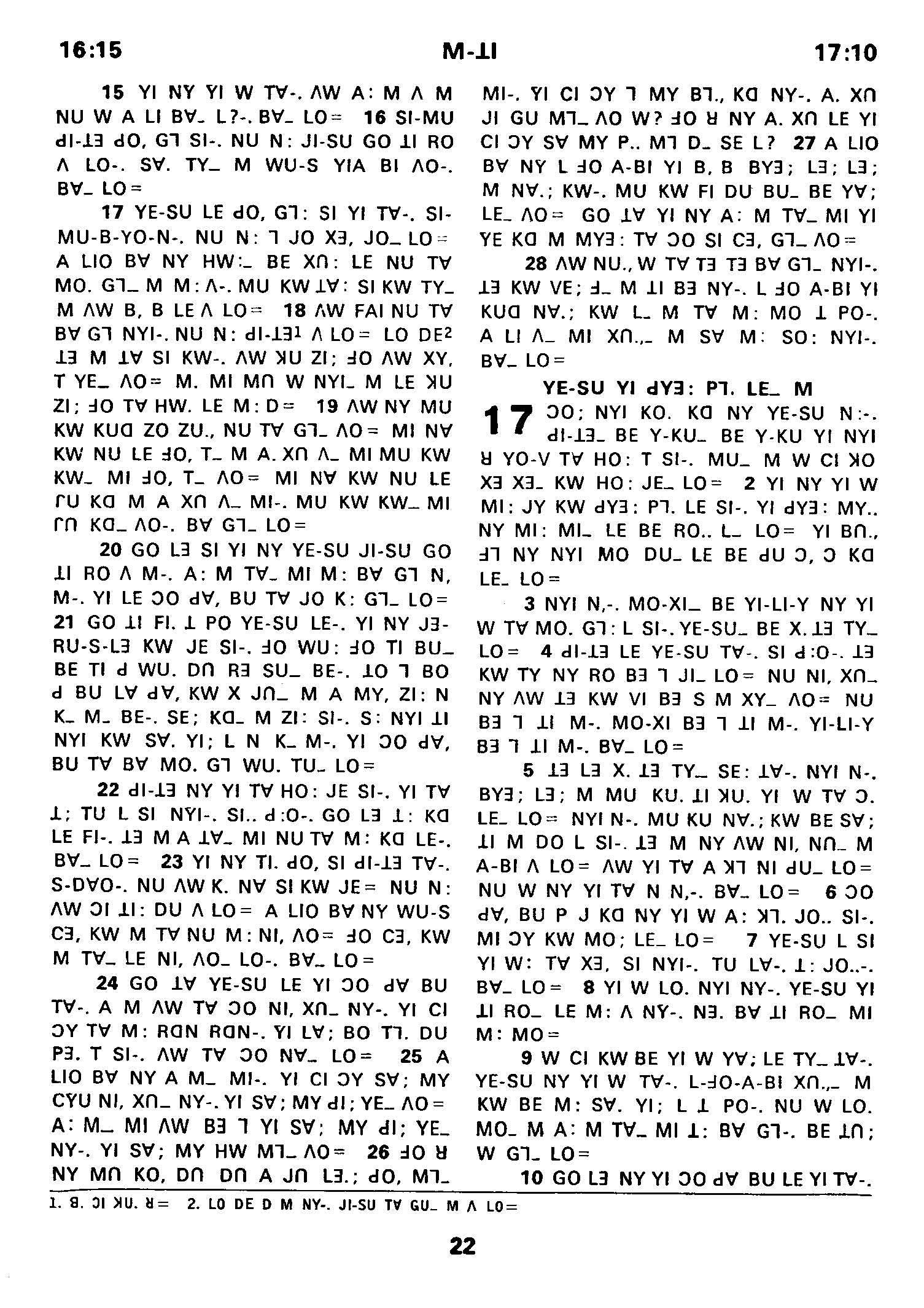 1980年傈僳語聖經全書 馬太福音 16 章 15 節到 17 章 10 節