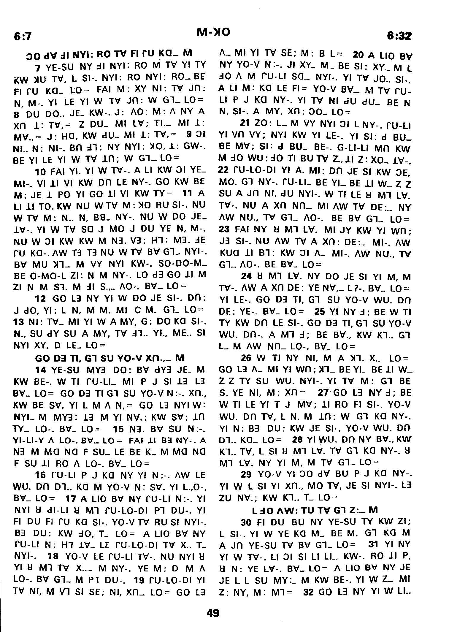 1980年傈僳語聖經全書 馬可福音 6 章 7 節到 6 章 32 節