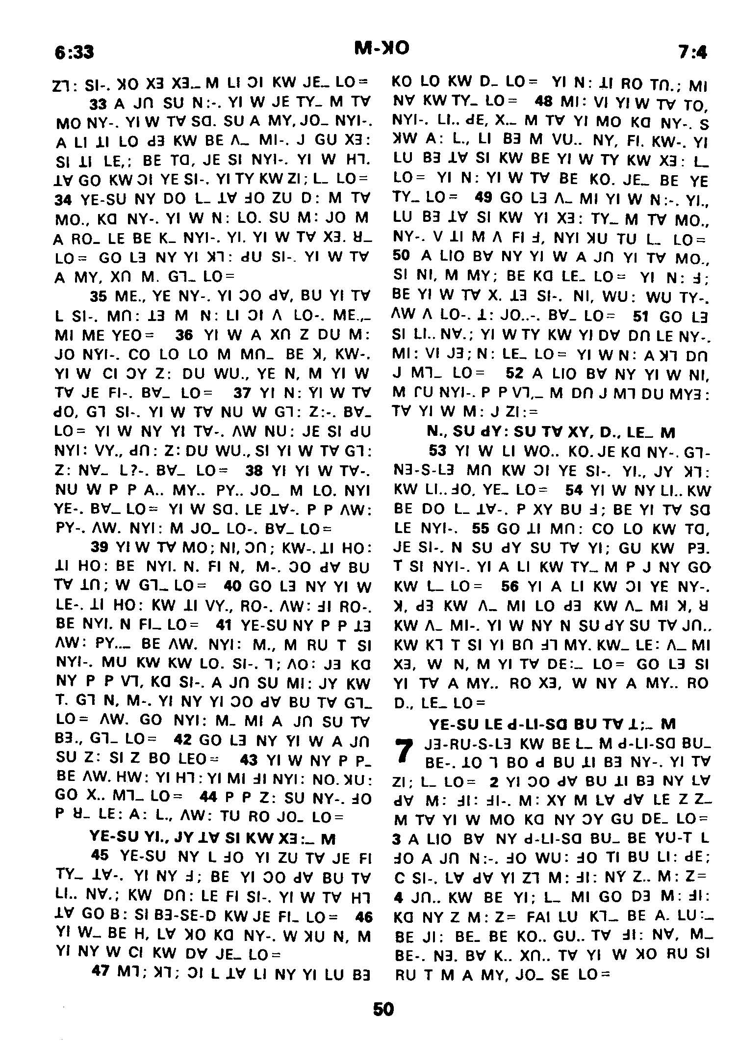 1980年傈僳語聖經全書 馬可福音 6 章 33 節到 7 章 4 節