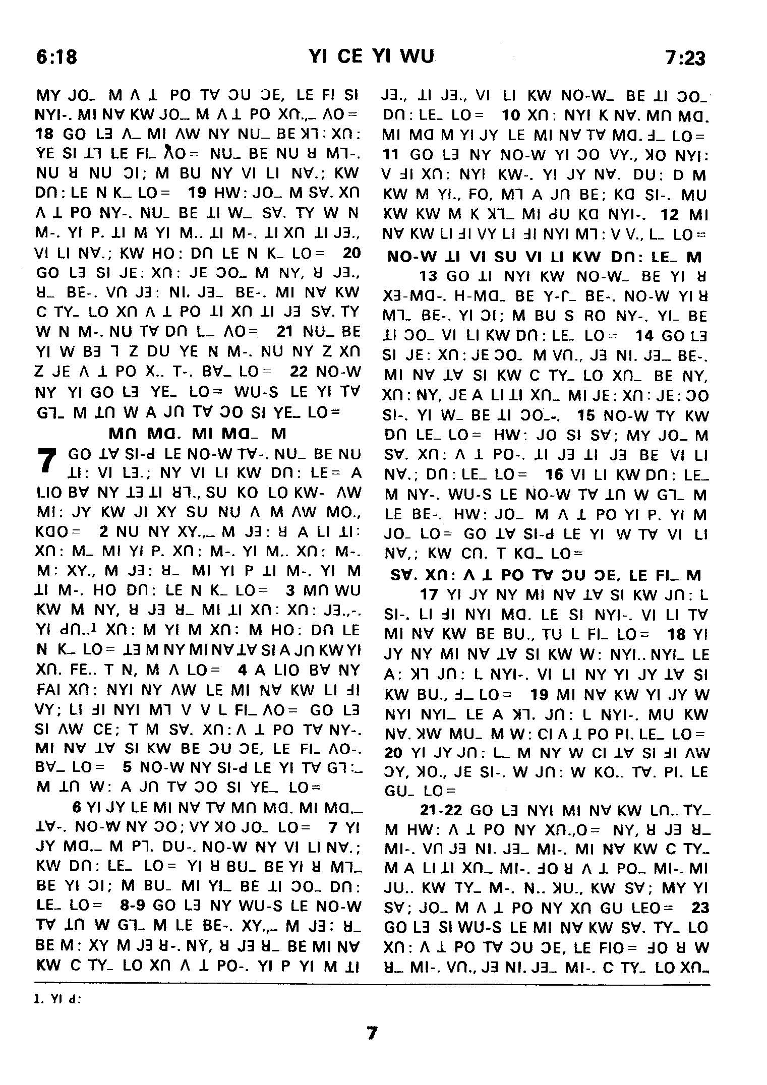 1980年傈僳語聖經全書 創世記 6 章 18 節到 7 章 23 節