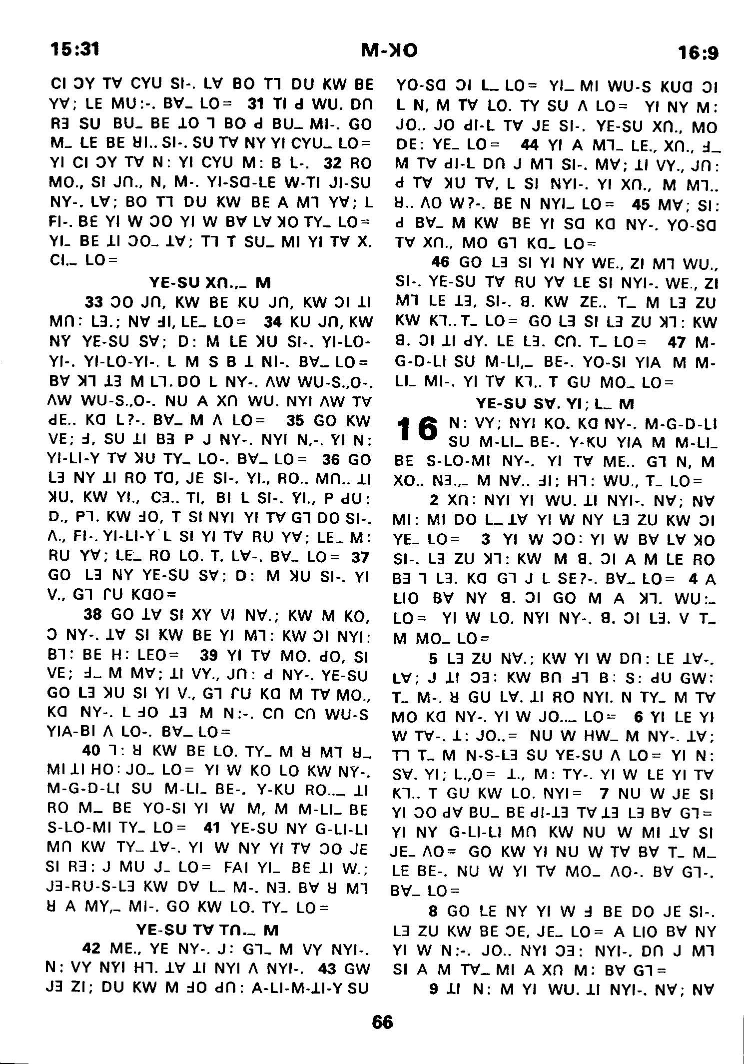 1980年傈僳語聖經全書 馬可福音 15 章 31 節到 16 章 9 節