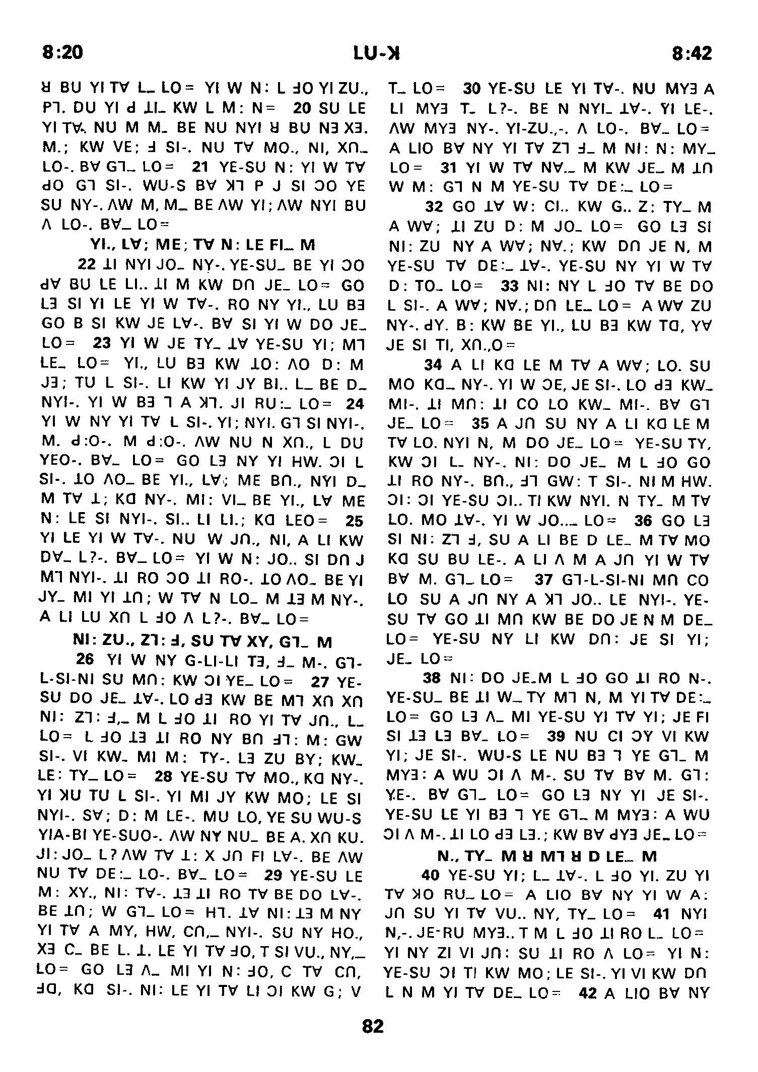 1980年傈僳語聖經全書 路加福音 8 章 20 節到 8 章 42 節