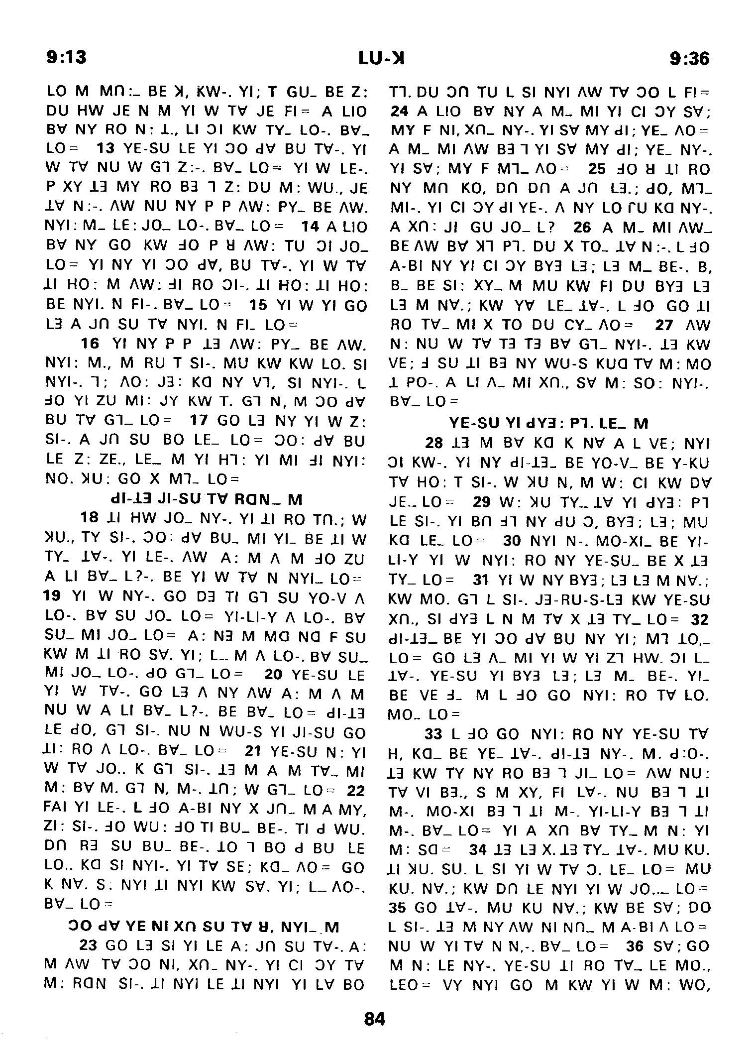 1980年傈僳語聖經全書 路加福音 9 章 13 節到 9 章 36 節