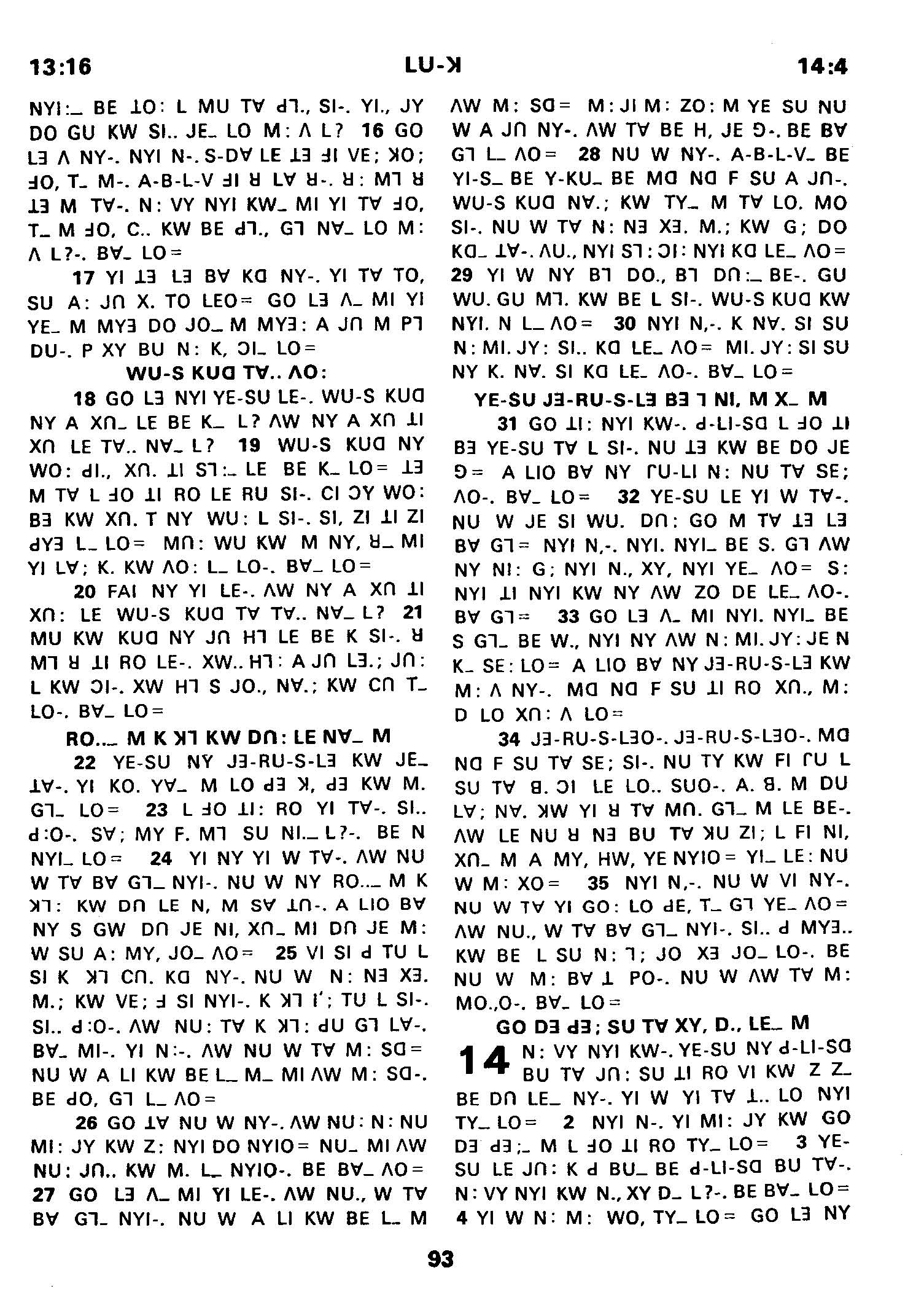 1980年傈僳語聖經全書 路加福音 13 章 16 節到 14 章 4 節