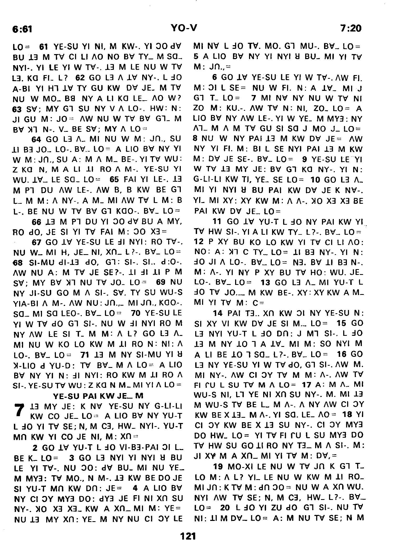 1980年傈僳語聖經全書 約翰福音 6 章 61 節到 7 章 20 節