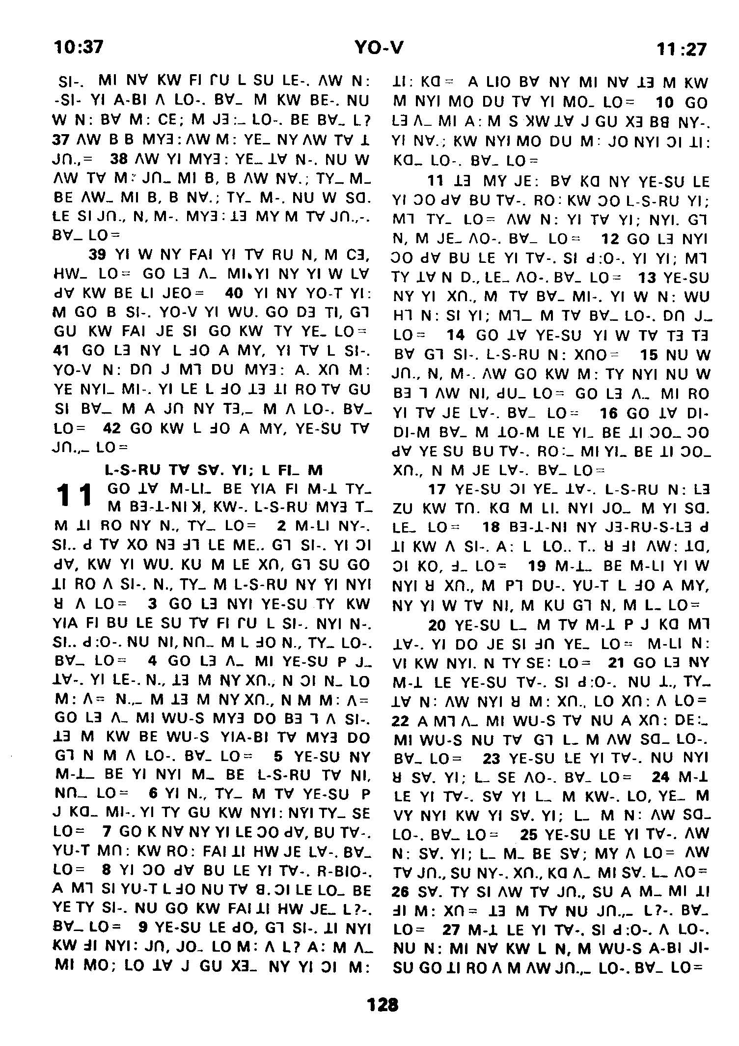 1980年傈僳語聖經全書 約翰福音 10 章 37 節到 11 章 27 節