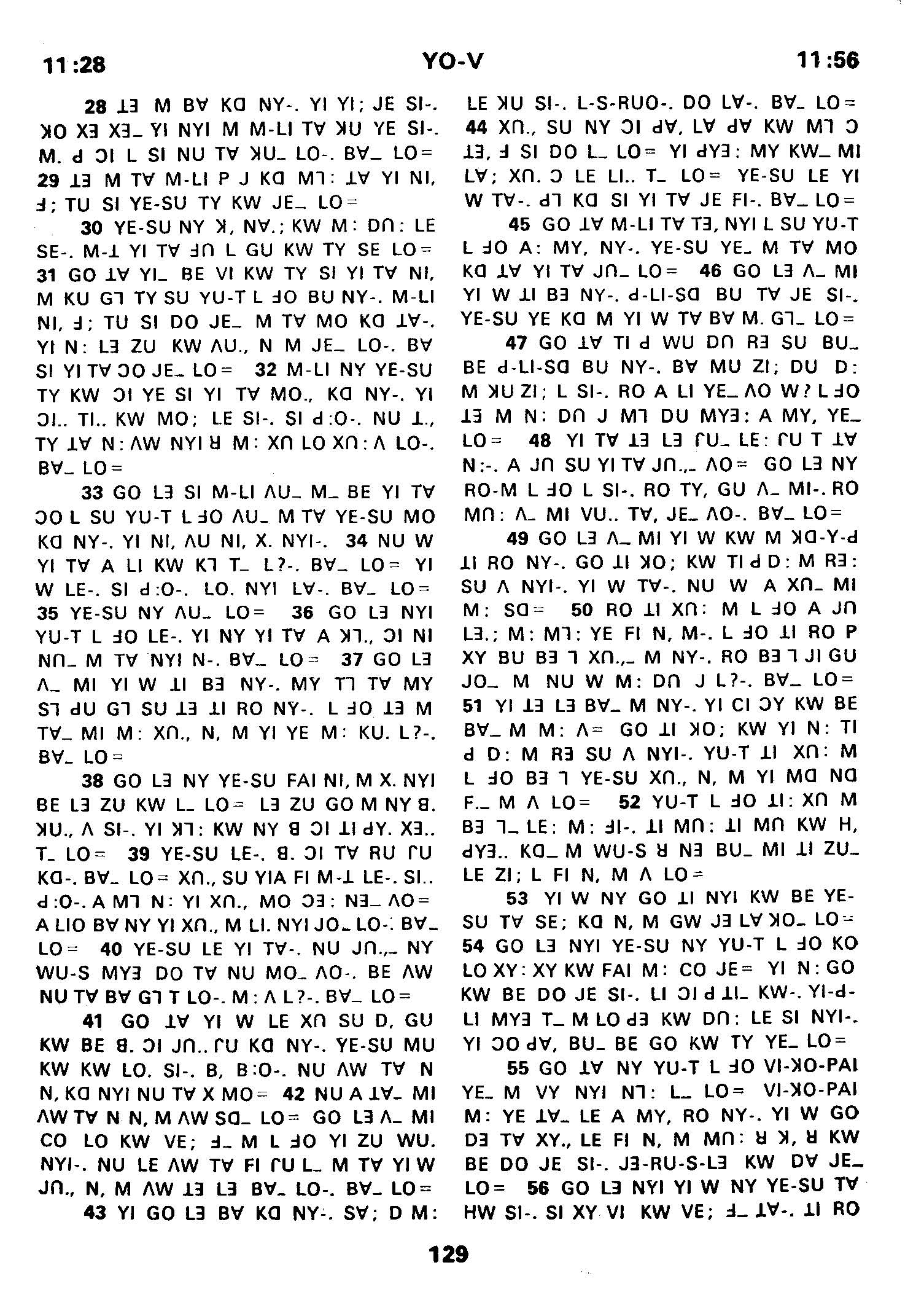 1980年傈僳語聖經全書 約翰福音 11 章 28 節到 11 章 56 節