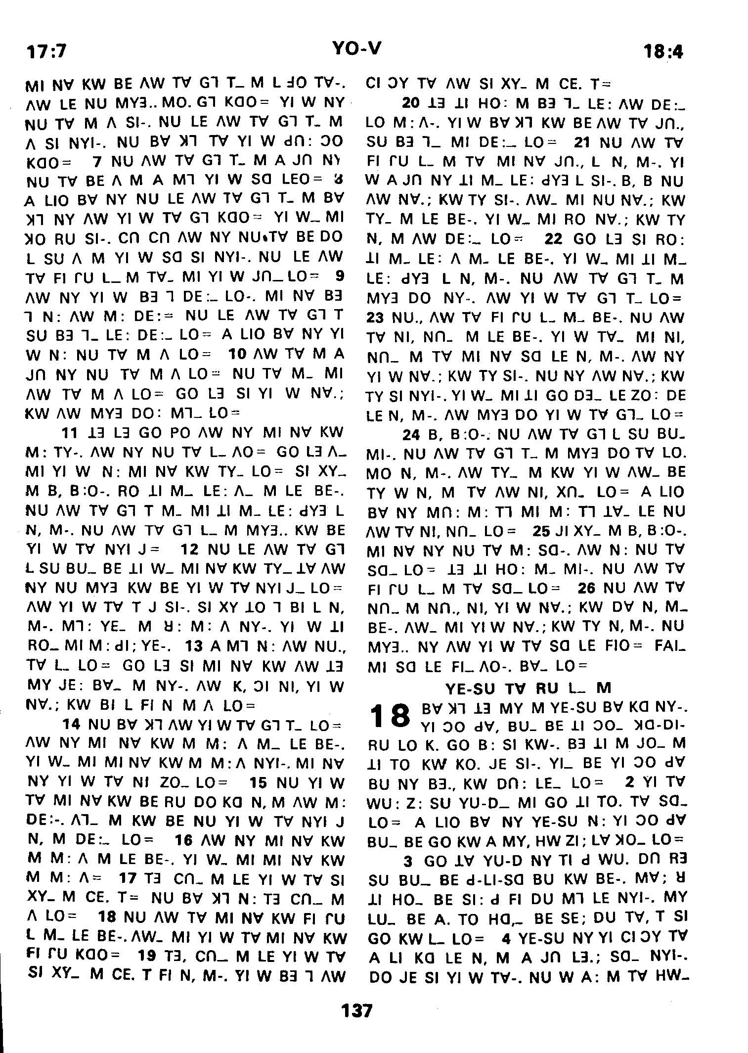 1980年傈僳語聖經全書 約翰福音 17 章 7 節到 18 章 4 節