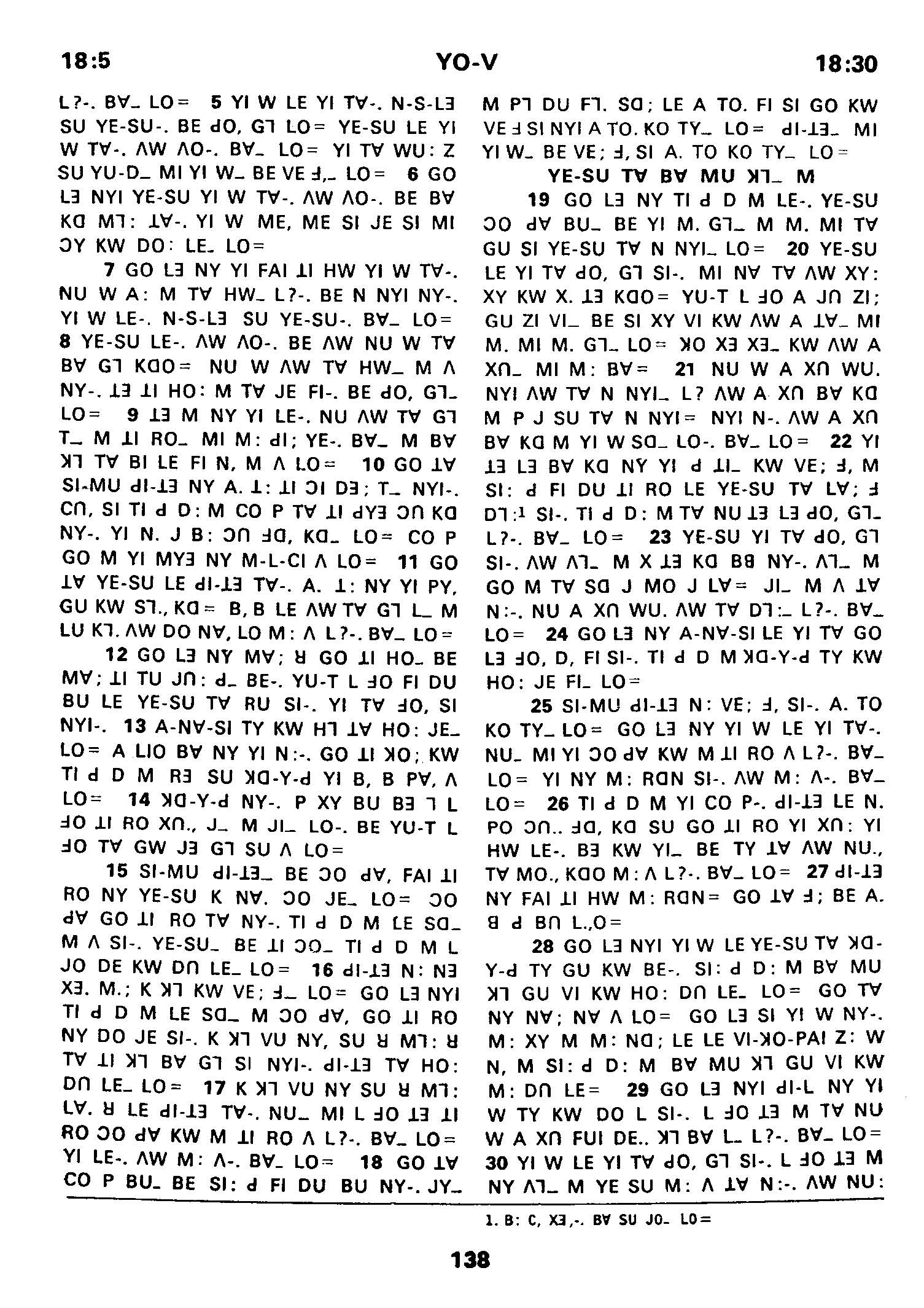 1980年傈僳語聖經全書 約翰福音 18 章 5 節到 18 章 30 節