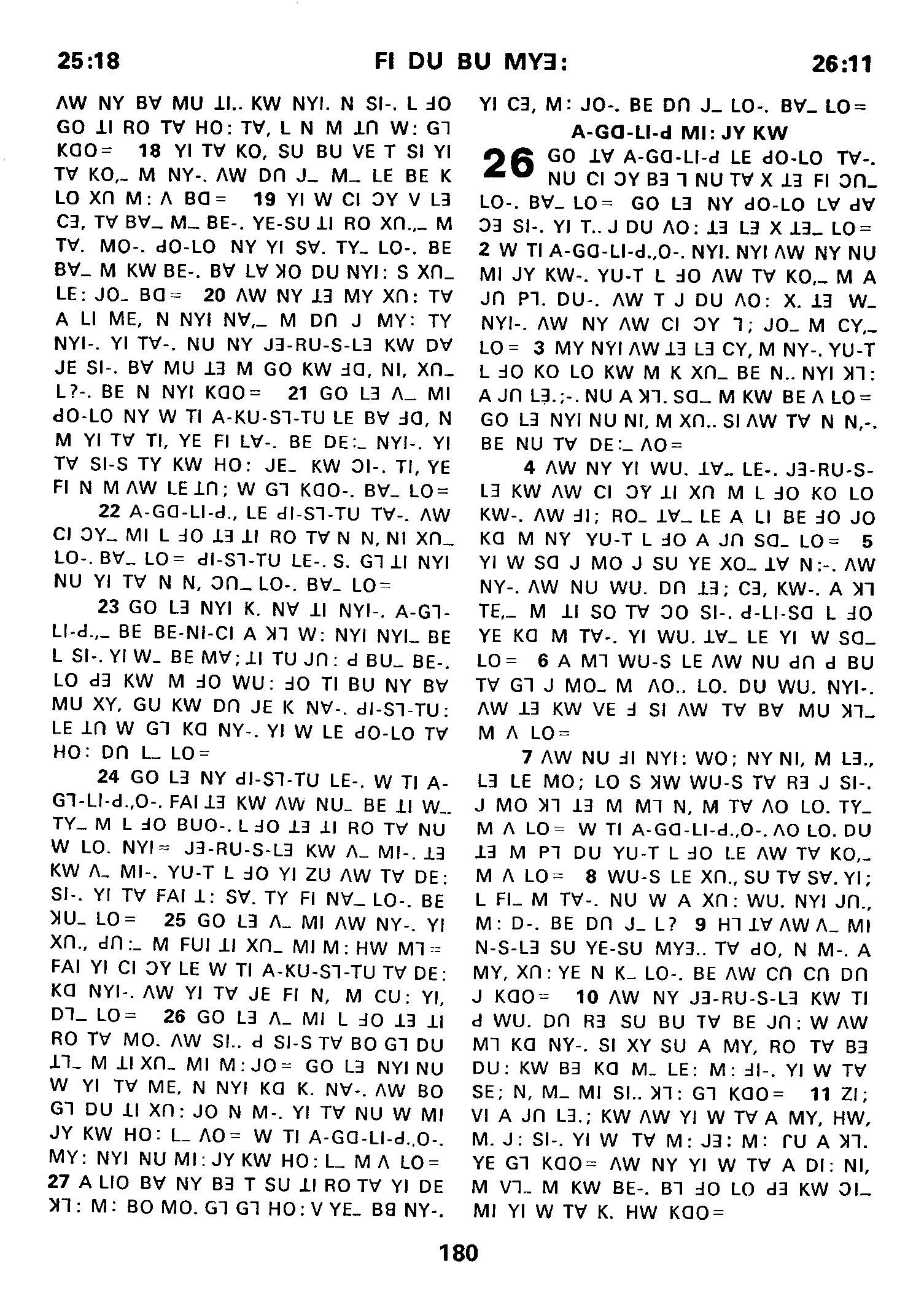 1980年傈僳語聖經全書 使徒行傳 25 章 18 節到 26 章 11 節