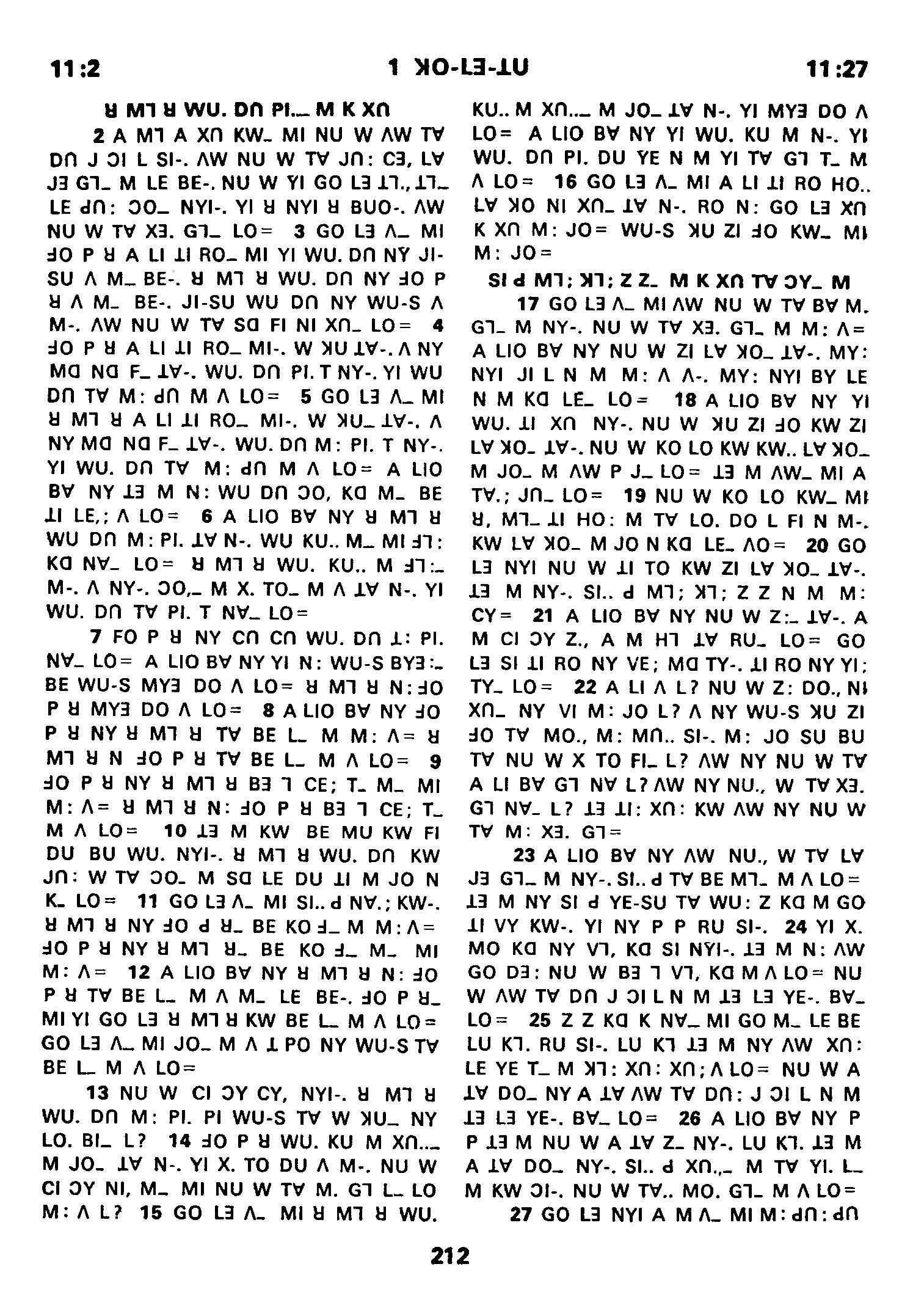 1980年傈僳語聖經全書 哥林多前書 11 章 2 節到 11 章 27 節