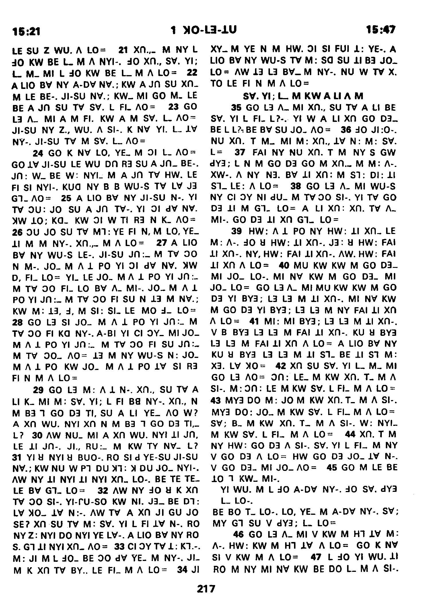 1980年傈僳語聖經全書 哥林多前書 15 章 21 節到 15 章 47 節