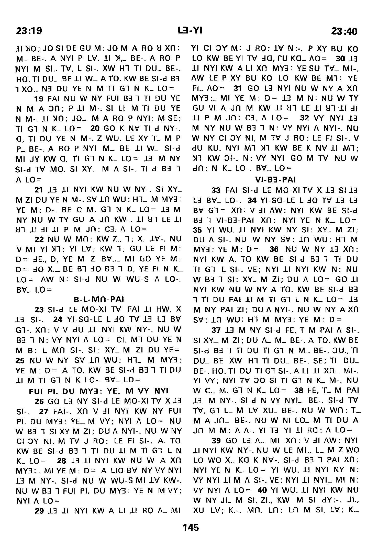 1980年傈僳語聖經全書 利未記 23 章 19 節到 23 章 40 節