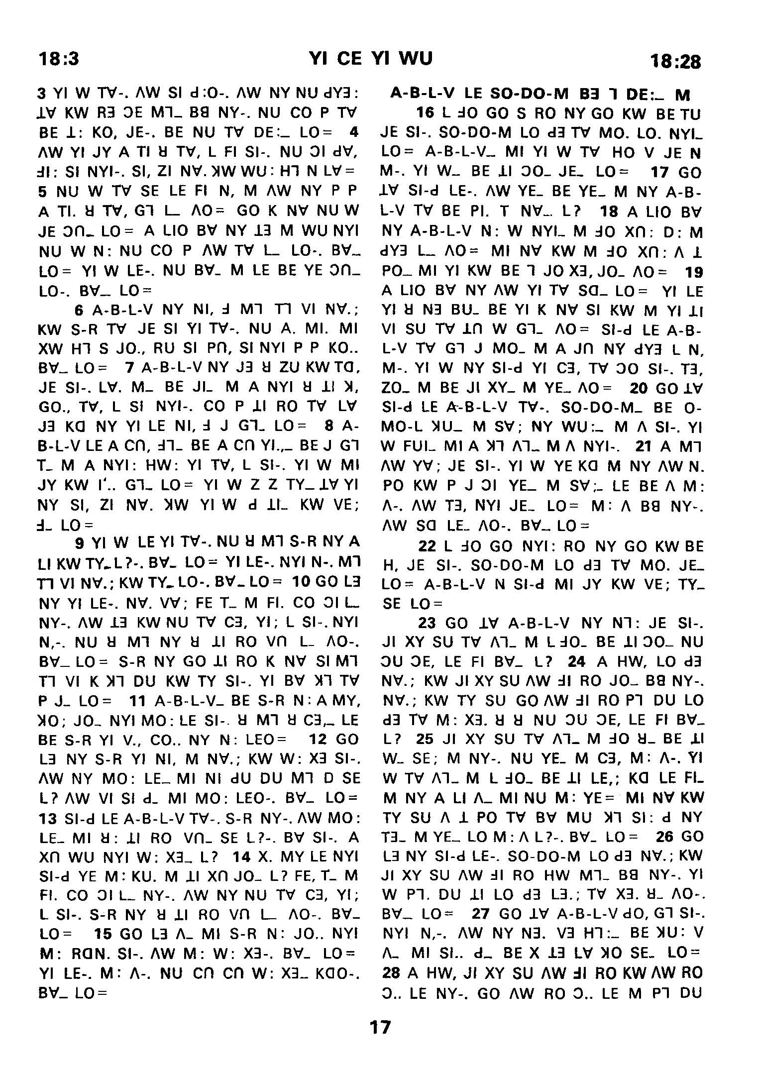 1980年傈僳語聖經全書 創世記 18 章 3 節到 18 章 28 節