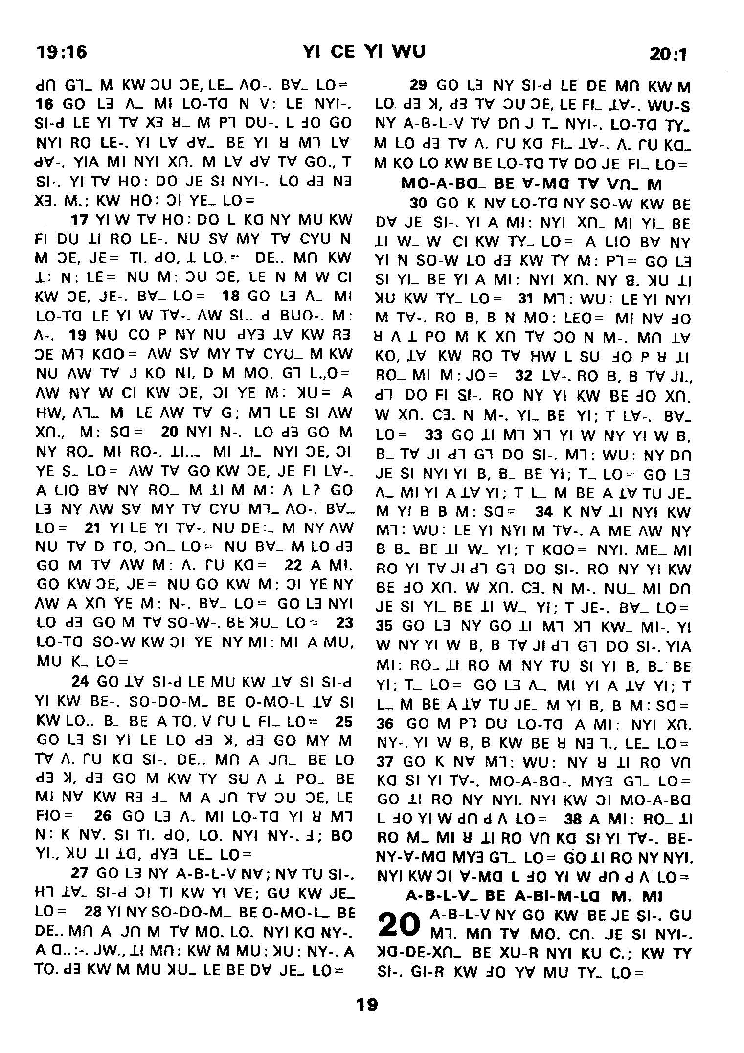 1980年傈僳語聖經全書 創世記 19 章 16 節到 20 章 1 節