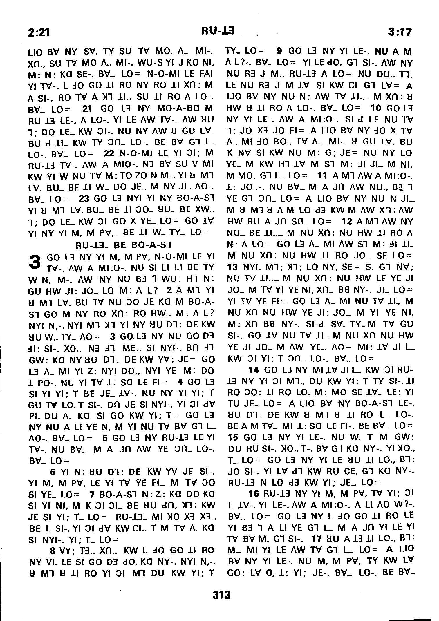 1980年傈僳語聖經全書 路得記 2 章 21 節到 3 章 17 節