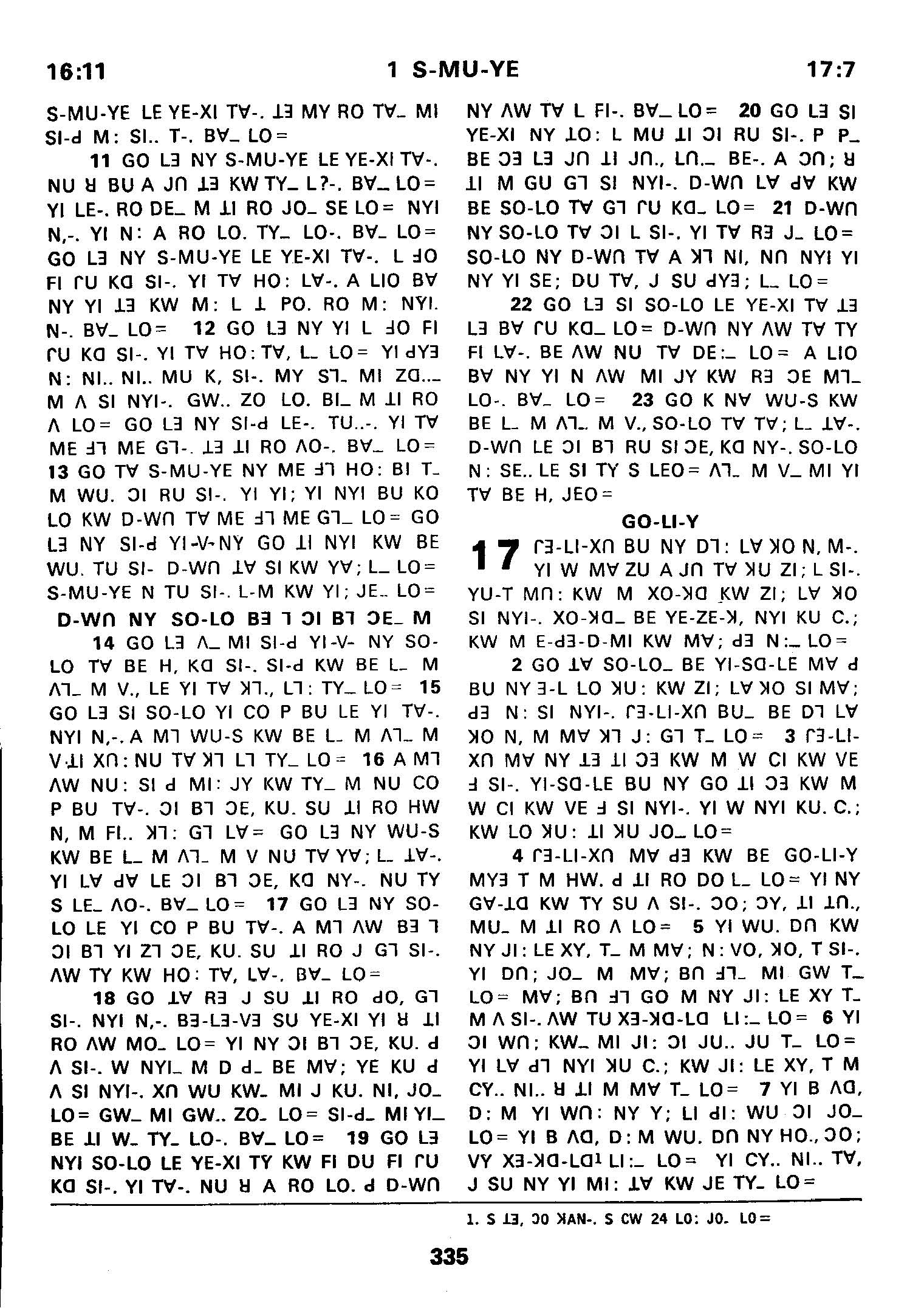1980年傈僳語聖經全書 撒母耳記上 16 章 11 節到 17 章 7 節