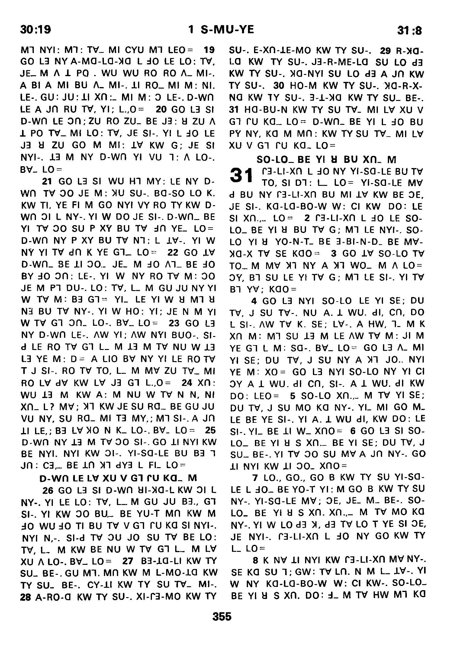 1980年傈僳語聖經全書 撒母耳記上 30 章 19 節到 31 章 8 節